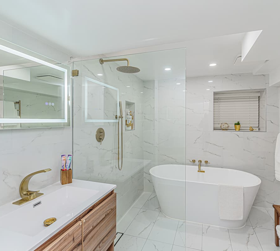 queen bedrooms provide peaceful retreats, and a luxurious bathroom with a standalone